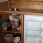 Az ingatlanhoz tartozik egy teakonyha hűtővel és főzőlappal.